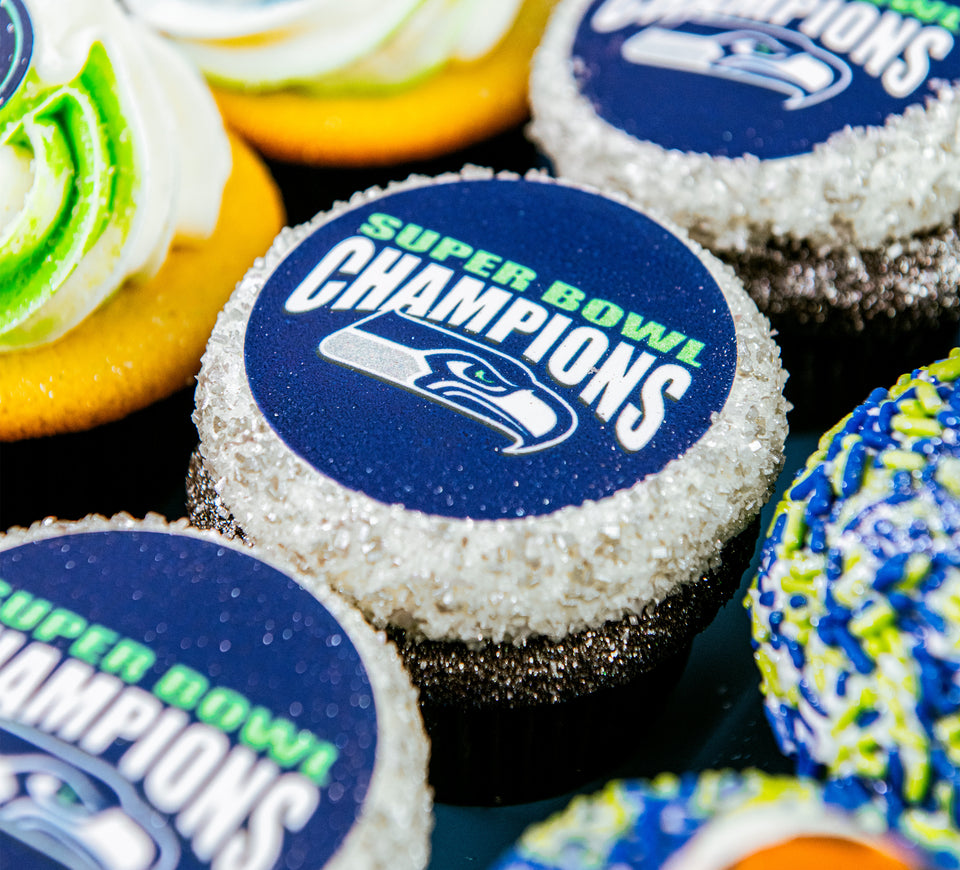 Seahawks fans, this one’s a win from the first bite. Our minis, cupcakes, and party platters bring bold team colors, candy footballs, and Trophy’s signature buttercream magic to the table, turning game day into a party-perfect championship celebration.