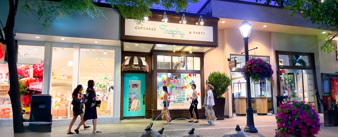 Trophy is located in the core mall area of pedestrian-friendly University Village, just east of Pottery Barn, right by the frog fountain.